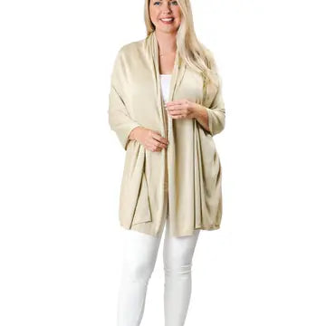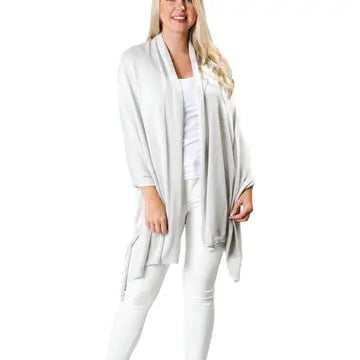 Looking to add a new essential to your wardrobe? Our bamboo shawl is a new twist to our #1 bamboo poncho. Chic up your style with this versatile shawl! Bamboo fibers make this piece lightweight and super soft. It's gorgeous drape makes it a great choice to update and complete any outfit. Great as a layering piece and looks great with our dresses!