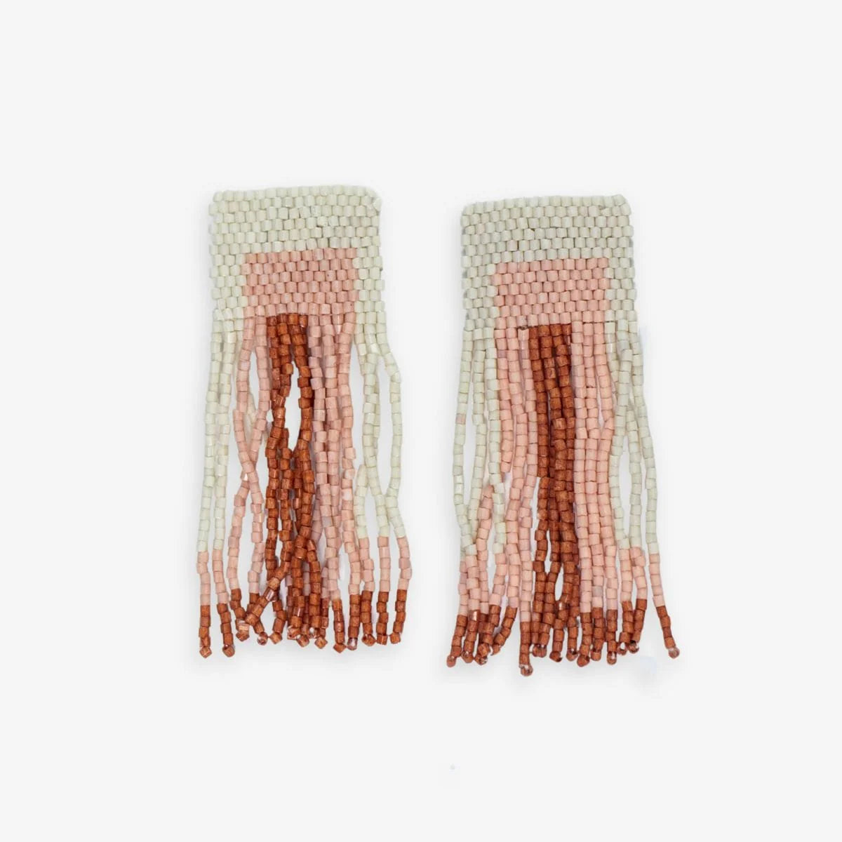 These Cream, blush, and rust Luxe post earrings offer stunning eye-catching shimmer and shine. Precision-cut glass beads create a petite statement earring that is sure to catch attention at your next night out.