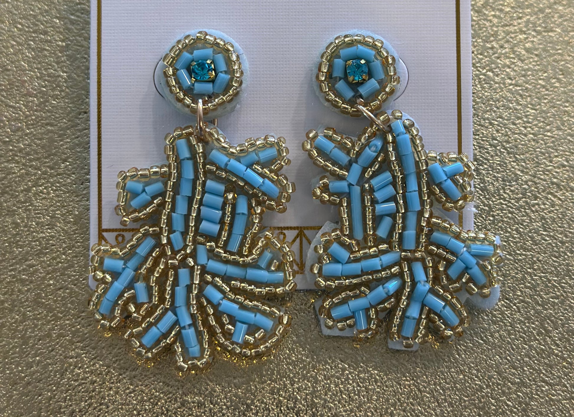 Beaded aqua and gold coral earrings