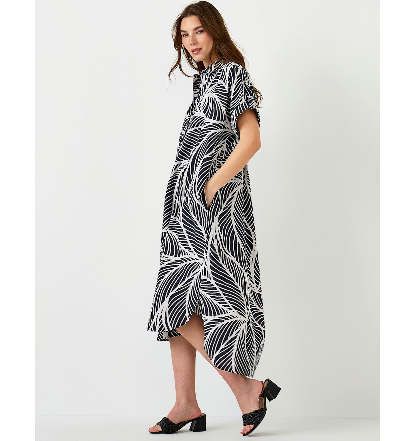 Black and White Print Shirt Dress