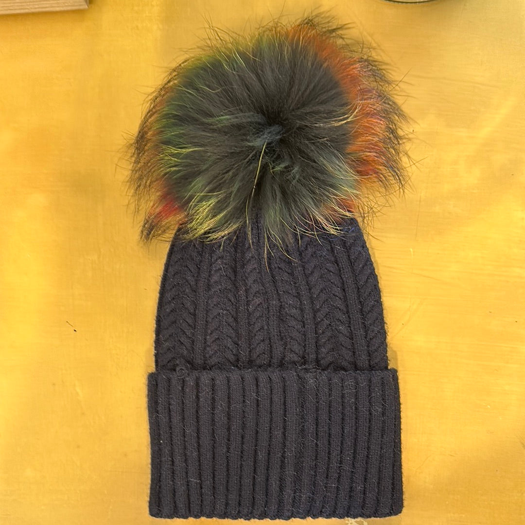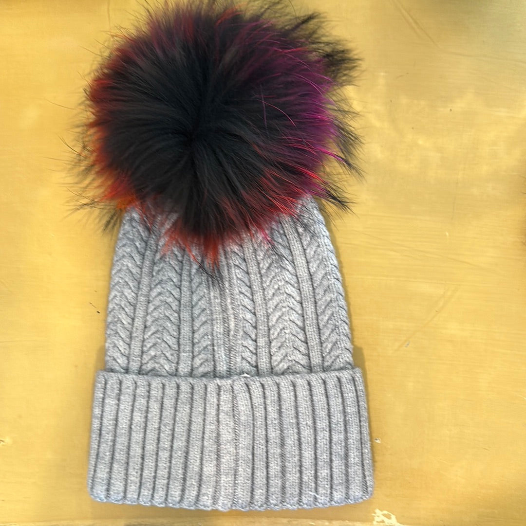 This luxurious hat is perfect for winter. Made with a blend of silk, cashmere and topped with a fox fur pom, it will keep your head warm and stylish. The natural fibers make it lightweight, while providing superior insulation.