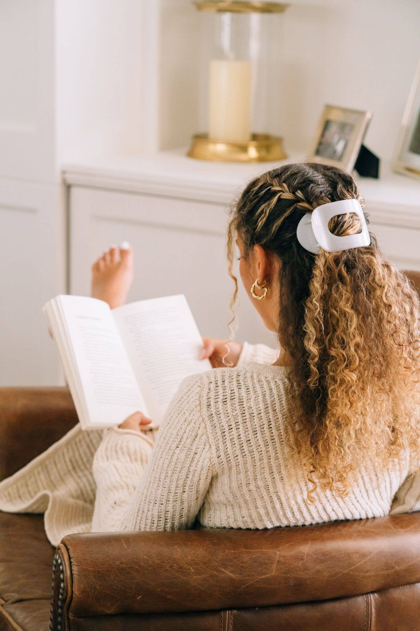 Unwind and relax with the new TELETIES Flat Round Hair Clip! Designed with our same innovative material that is nearly unbreakable, this clip is perfect for lying down, doing yoga or simply laying back without discomfort. The large size is great for thick hair.
