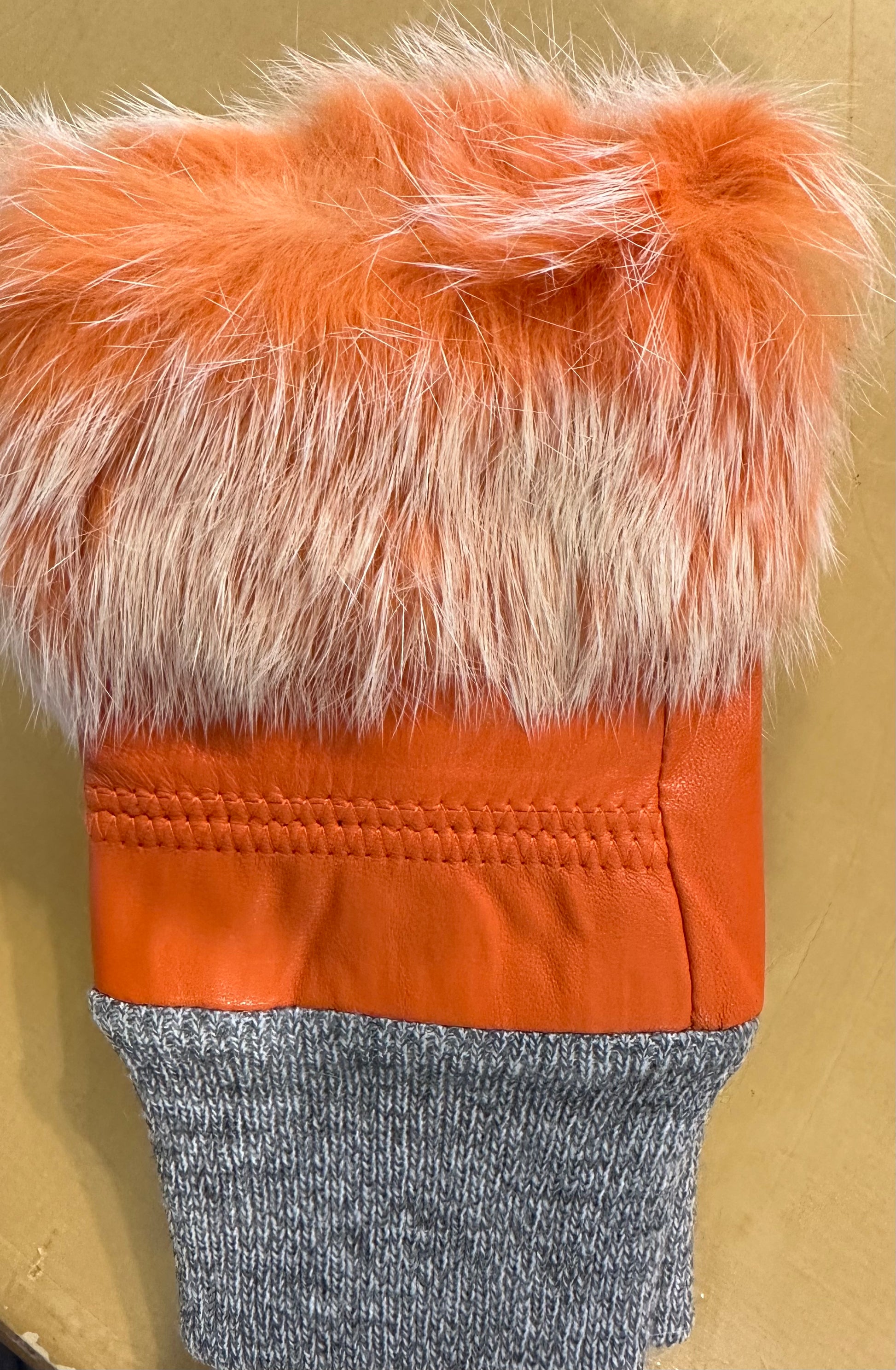 Soft and warm leather fingerless gloves, featuring a coney fur trim, to keep you cozy all winter long. Available in a variety of colors.