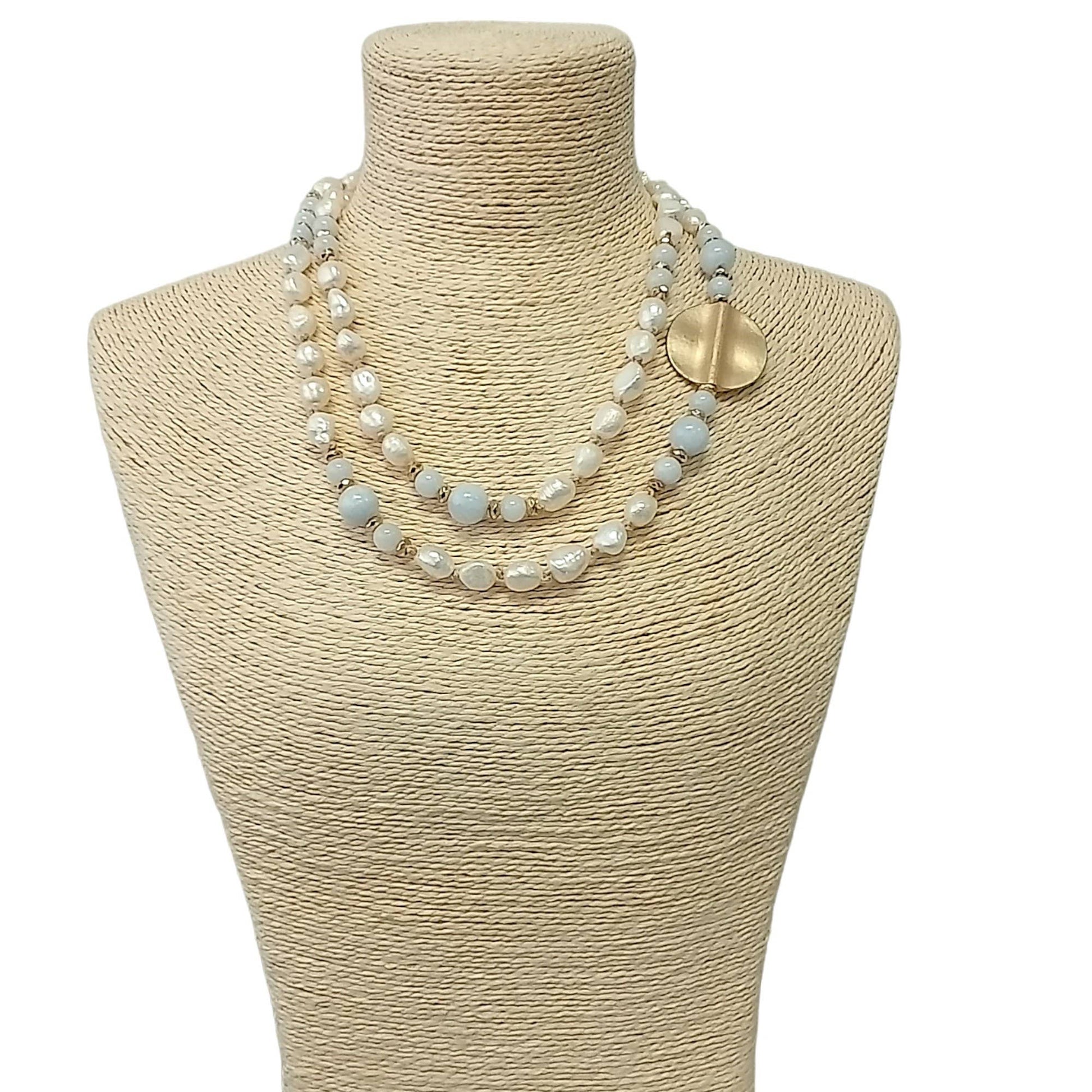The Designer Jewelry Your Customers are Looking For Handmade | On-Trend | Statement | Necklaces What makes this necklace unique? * 38" (can be doubled) * White Baroque Freshwater Pearl * Glass Gemstone * Gold Coin Metal Side Pendant