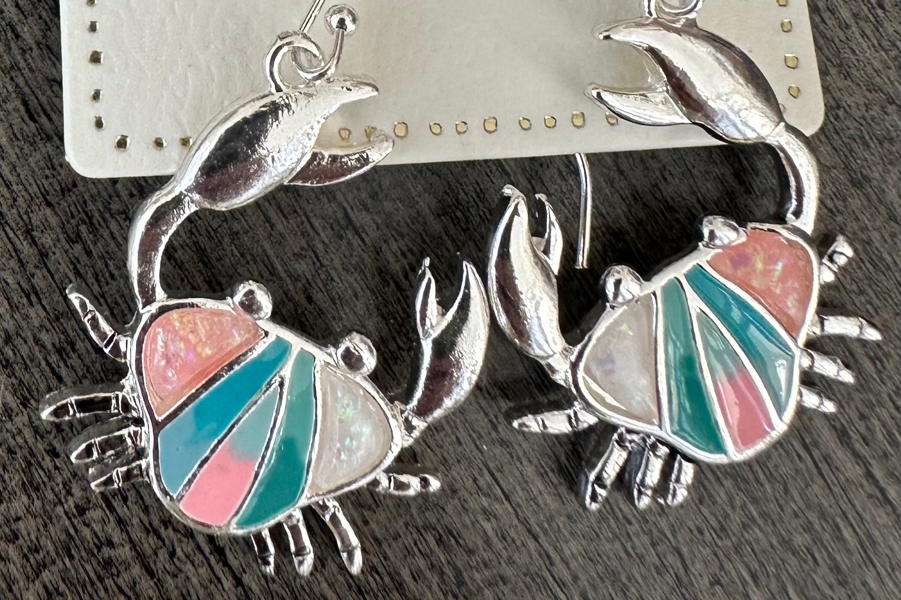 Silver, Aqua, and Pink Crab Earrings