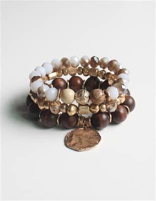 Brown, Gold, and Natural Stone Stretch Bracelet