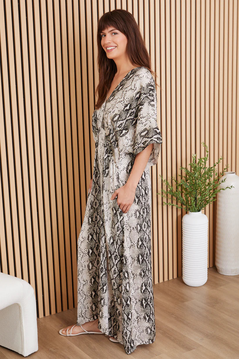 Snake Print V Neck Dolman Maxi Dress